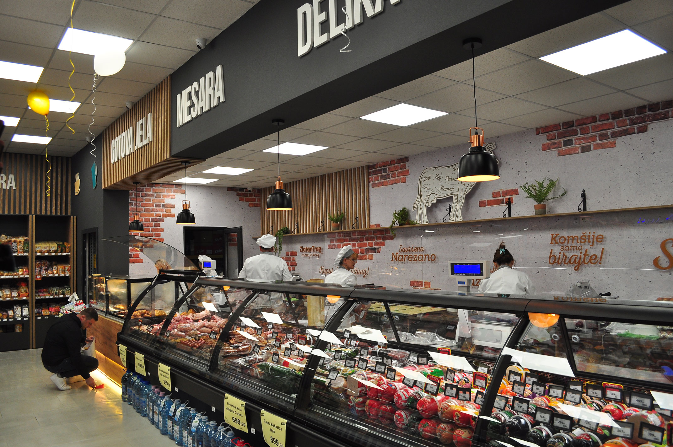 U novom i moderno opremljenom ambijentu, smešten je pažljivo odabran asortiman kvalitetnih domaćih i stranih brendova, sa atraktivnom sezonskom i ponudom sveže pečenog mesa i peciva.