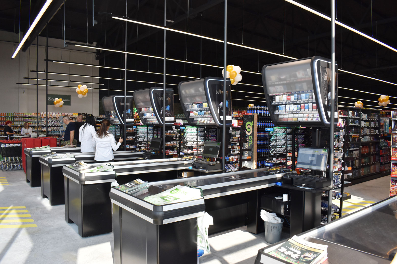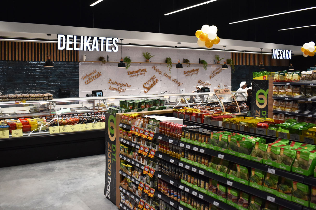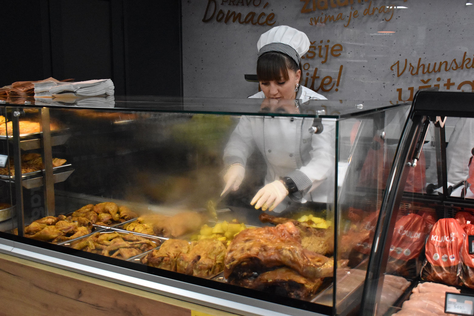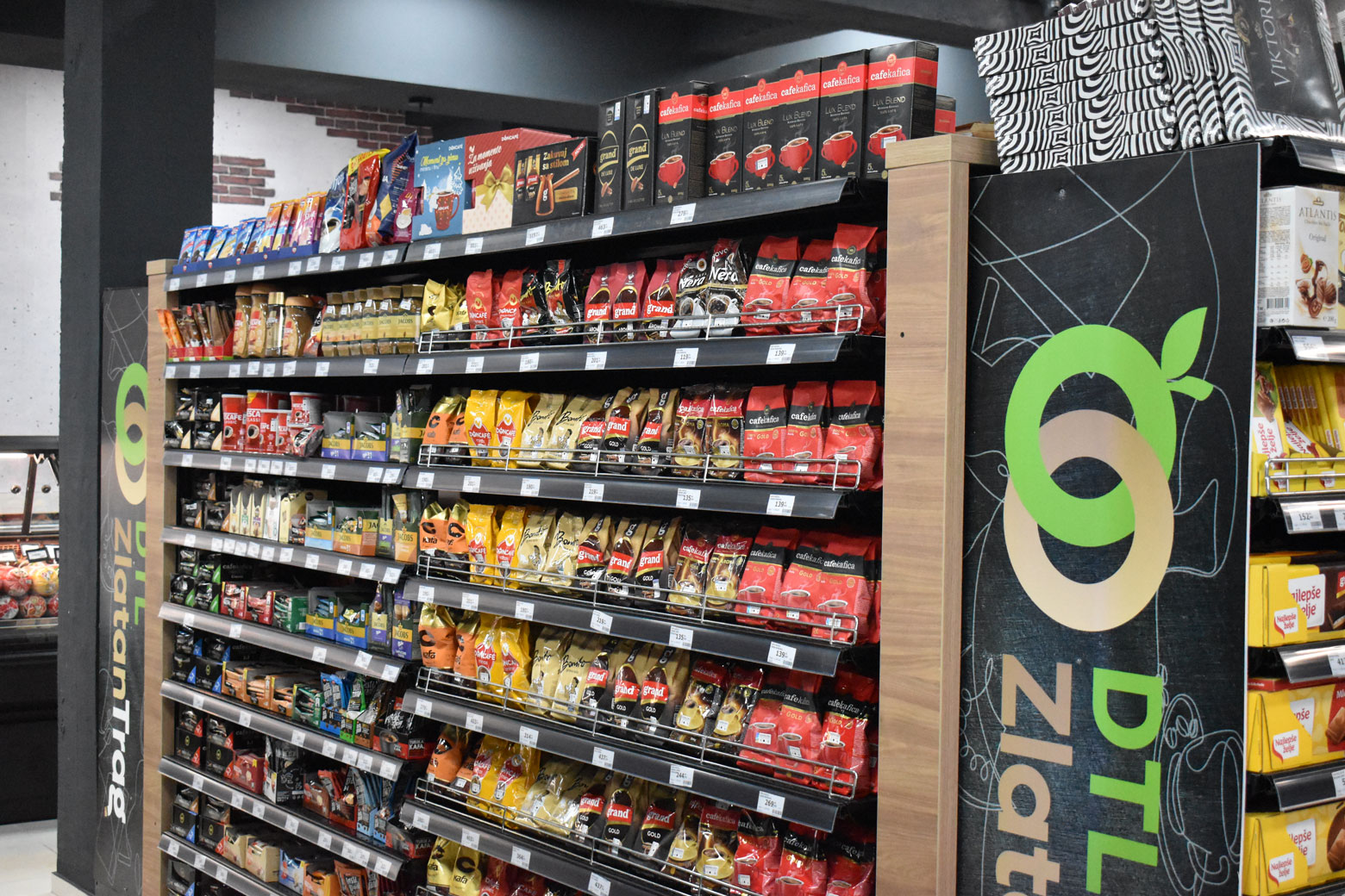 U novom i moderno opremljenom ambijentu, smešten je pažljivo odabran asortiman kvalitetnih domaćih i stranih brendova, sa atraktivnom sezonskom i ponudom sveže pečenog mesa.