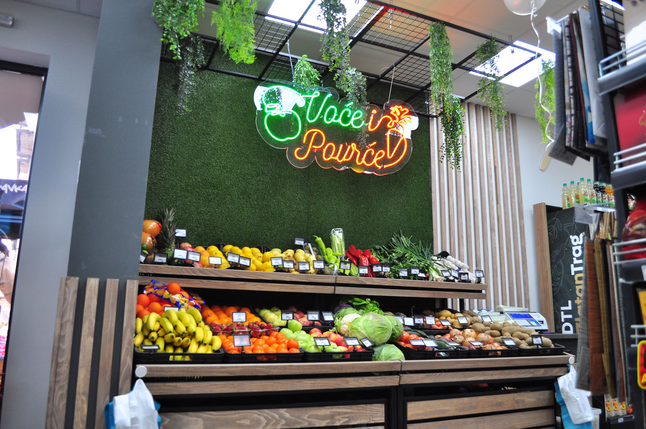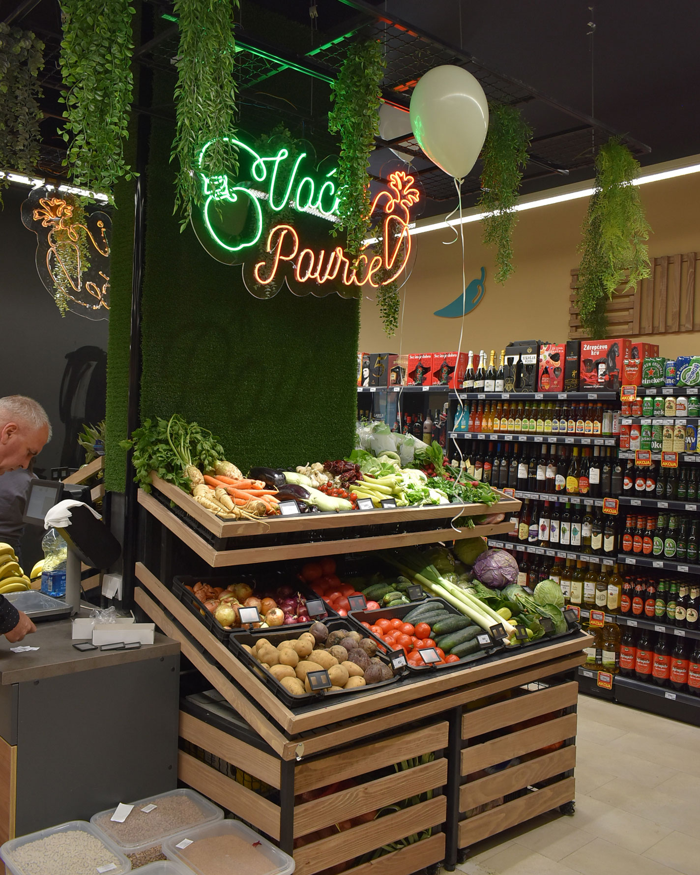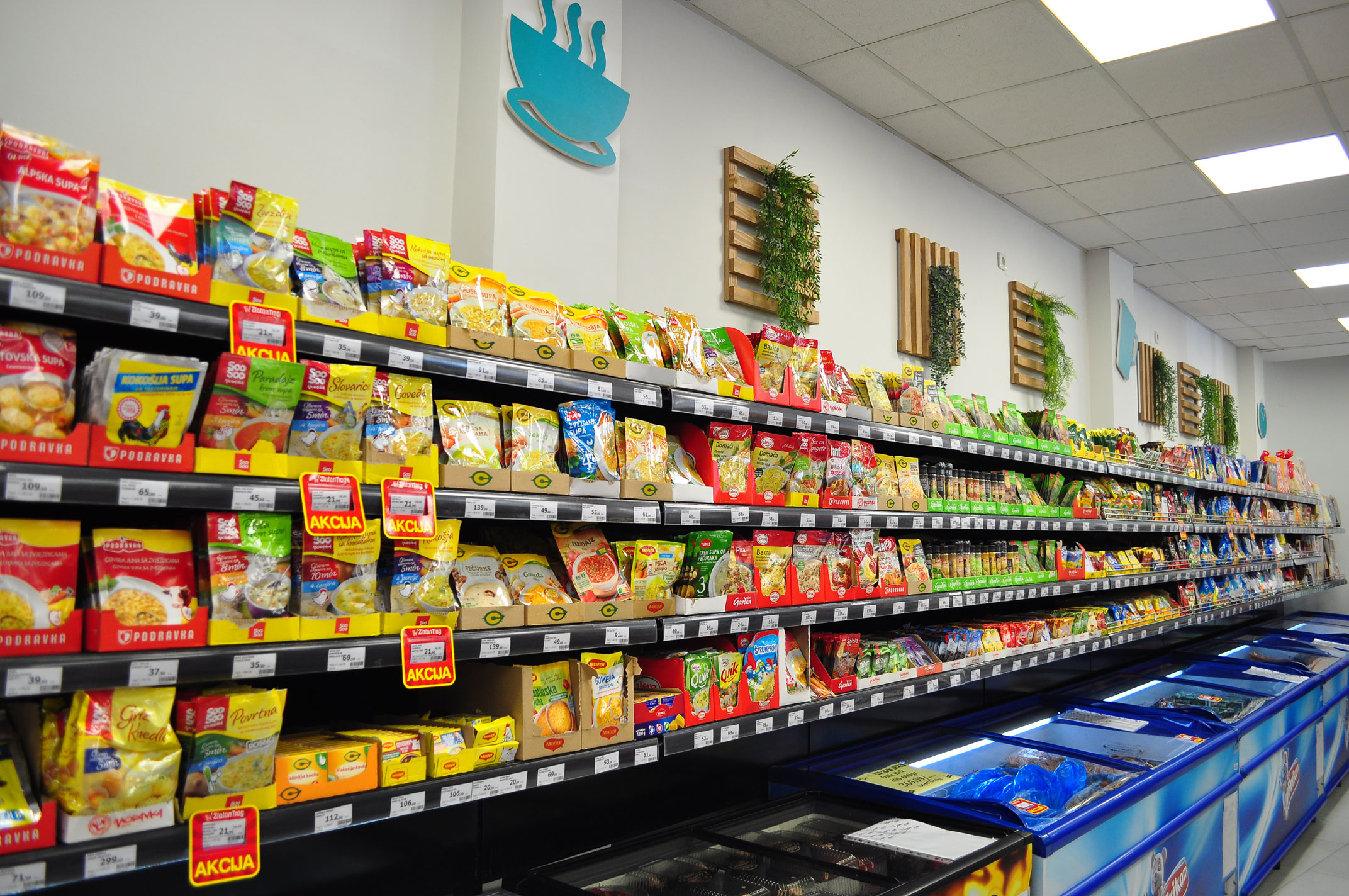 U novom i moderno opremljenom ambijentu, smešten je pažljivo odabran asortiman kvalitetnih domaćih i stranih brendova, sa atraktivnom sezonskom i ponudom sveže pečenog mesa i peciva.