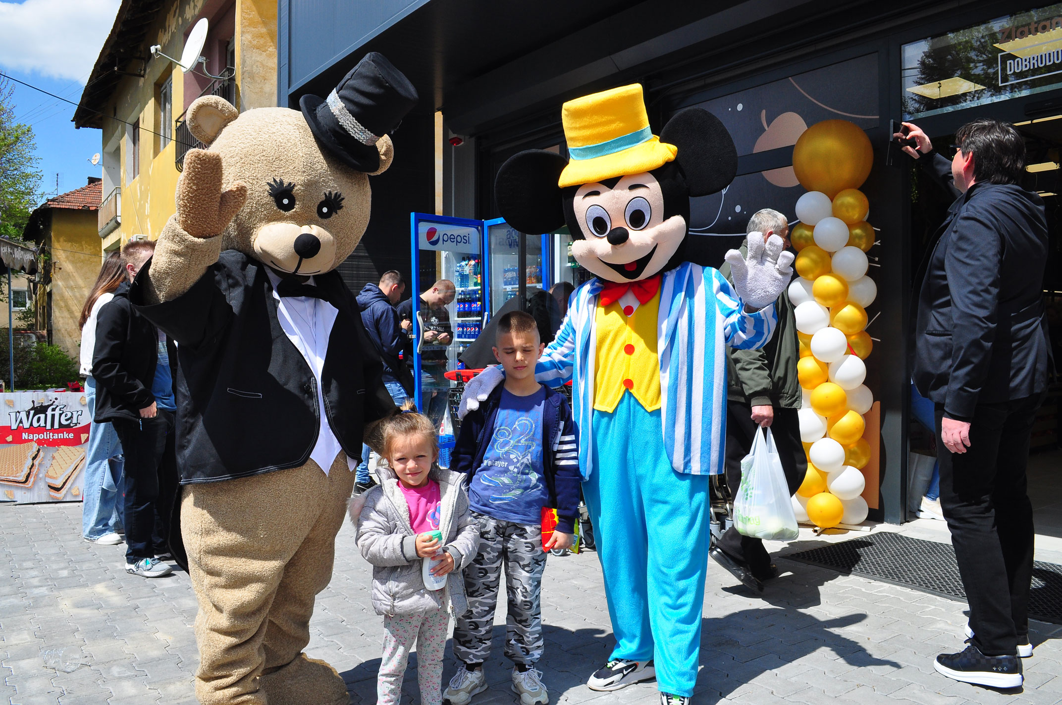 Na dan otvaranja kupce je zabavljao DJ uz posluženje u vidu dobropoznatih leskovačkih specijaliteta, piva, raznih degustacija, poklona na iznos kupovine, a za najmalađe posetioce organizovali smo predstavu sa Diznijevim junacima sa početkom u 13 časova.